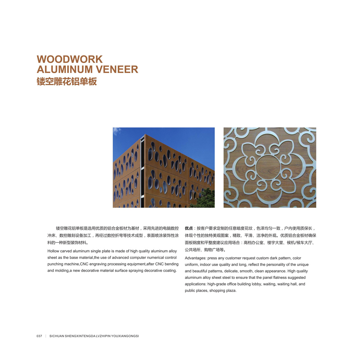 優(yōu)點(diǎn) : 按客戶(hù)要求定制的任意暗度花紋,?澤均勻?致,戶(hù)內(nèi)使?質(zhì)保?, 體現(xiàn)個(gè)性的獨(dú)特美觀(guān)圖案,精致、平滑、潔凈的外觀(guān)。優(yōu)質(zhì)鋁合?板材確保?板鋼度和平整度建議應(yīng)?場(chǎng)合:?檔辦公室、樓宇?堂、候機(jī)/候??廳、公共場(chǎng)所、購(gòu)物?場(chǎng)等。